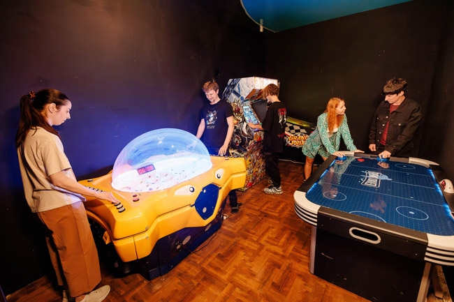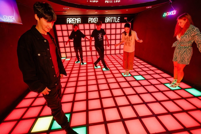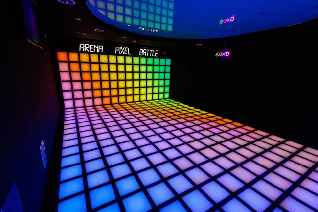 Игроки делятся на две группы, и пока одна часть команды проходит игры на световом полу, вторая команда набирает очки в аркадных играх: играх VR, на пинбольном игровом столе, в игре на реакцию ниндзя, и в аркадном игровом автомате, тире и космическом баскетболе. После чего команды меняются местами. Смена игр проходит каждые 30 минут, за время игры, обе команды будут играть по два раза: и на пиксельном полу и в комнате аттракционов.